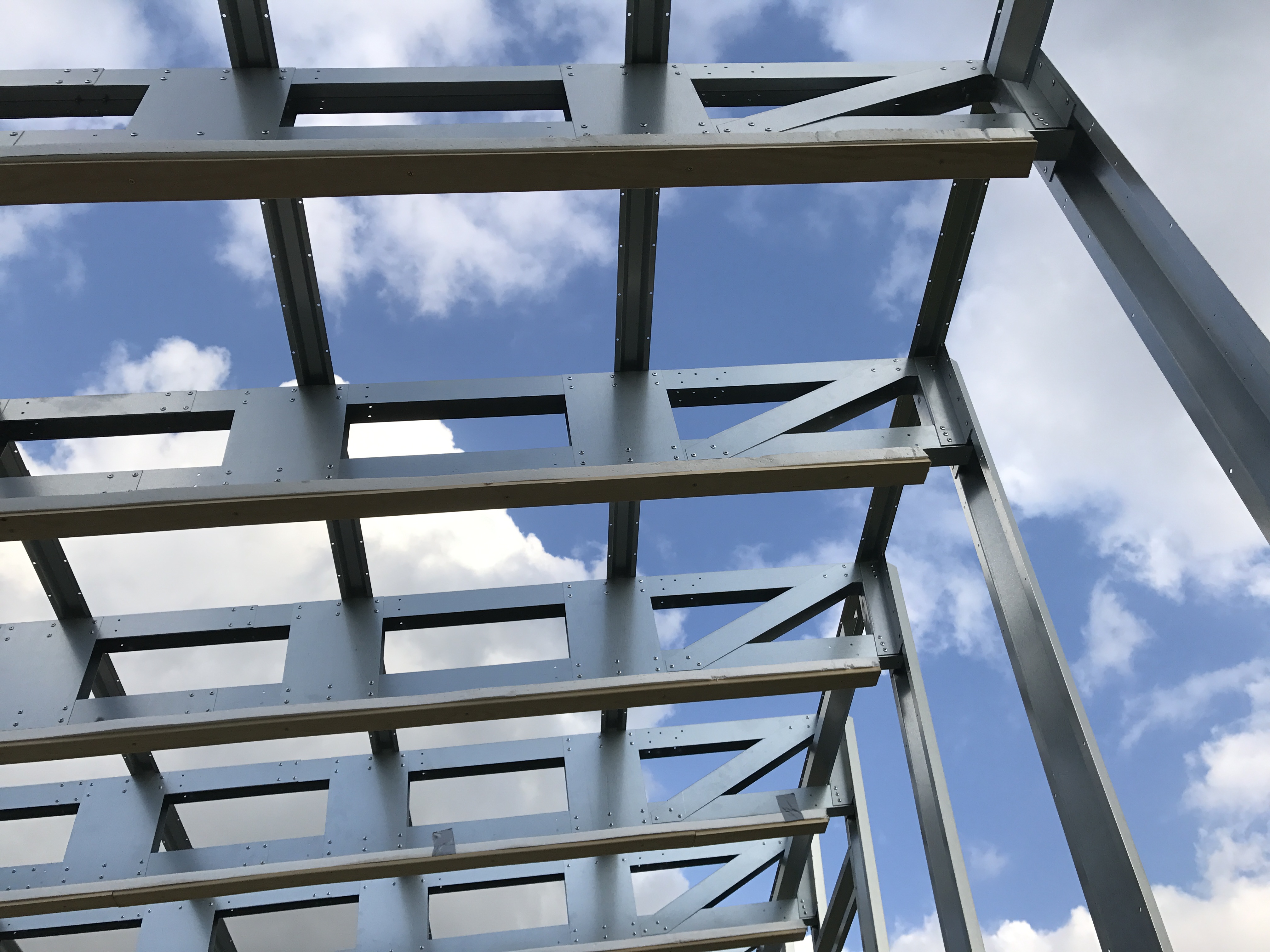 Galvan House använder en stomme i stål helt utan organiska material, vilket gör byggnaderna robusta och underhållsfria.